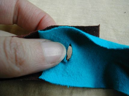 Passe a ponta de uma tira por dentro do corte feito anteriormente. Faça isso com várias tiras em sequência.